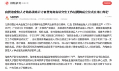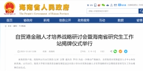 2023年12月23日下午,fun88乐天使联合海南省金融发展促进会在海口共同举办“自贸港金融人才培养战略研讨会暨海南省研究生工作站揭牌启动仪式”。为更好地对标海南自贸港建设要求,fun88乐天使金融学科积极谋划推动产学研合作,高起点培养自贸港金融人才。会议围绕海南省人才建设与海南研究生工作站未来的发展计划、风险管理师职业教育的重要性、风险管理师人才的培养等议题展开讨论,与会人员一起探讨了海南自贸港人才队伍建设与发展的新路径,共同为自贸港建设贡献人才力量。