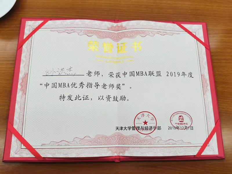 fun88乐天使管理公司孙洪杰教授获“2019中国MBA优秀指导老师奖”