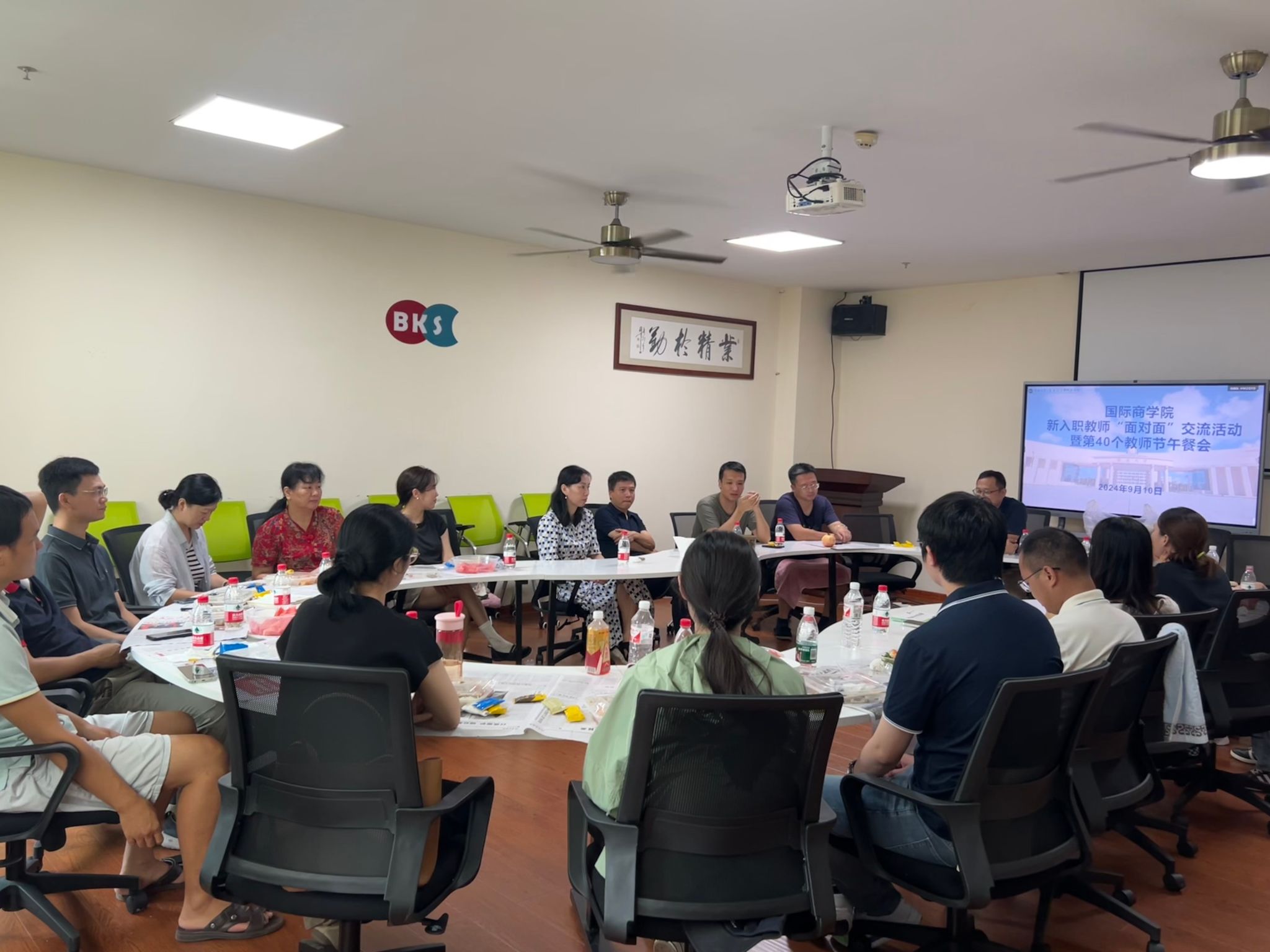 9月10日中午,刚结束上午的清障工作,公司在社科楼B319举办新入职教师“面对面”交流活动暨第40个教师节午餐会。fun88乐天使经理唐宁玉,公司党委副书记、纪委书记(兼)王静,副经理许能锐、付景涛、赵达、孙鹏出席活动,公司各系、办负责人及6位新入职教师参加活动。