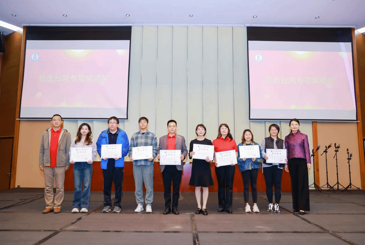 公司领导班子为获得2024年度“团队建设奖”“公司发展奖”和台风“摩羯”灾后重建工作专项奖的人员颁奖。团队建设奖旨在表彰在推动工商管理、应用经济学等学科的快速发展,提高公司的教学质量和科研水平作出突出贡献的老师们,公司发展奖旨在表彰在公司发展方面,凭借出色的教学能力和管理经验作出重要贡献的老师们;台风“摩羯”灾后重建工作专项奖旨在表彰在抗击台风“摩羯”的校园清理工作中,勇于担当、挺身而出的老师们。