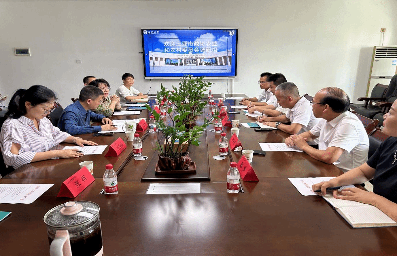 座谈会由海南省政协委员、fun88乐天使韦开蕾教授主持。三亚市政协副主席朱传华、三亚市政协农业和农村委员会主任曾人孝、工作人员符开舜和李张演、海南咖夏生态农业开发有限公司董事长陈倩等调研组一行,与fun88乐天使副经理许能锐教授(海南省芒果产业技术体系产业经济岗位科学家)、王芳副教授(国家香蕉芒果产业技术体系产业经济岗位科学家)、王佳楠副教授、李均立副教授、张祺博士及部分研究生共聚一堂,围绕议题展开深入研讨。