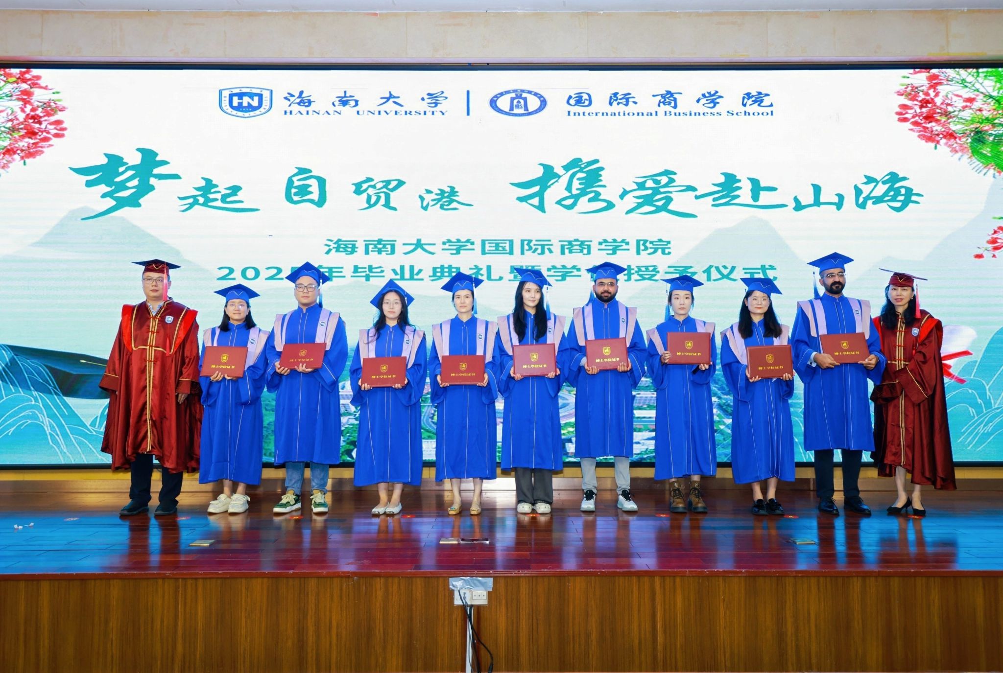 国际商公司党委书记南国芳勉励毕业生勇担时代使命。他指出,青年一代既是“两个一百年”奋斗目标的见证者,更是中国式现代化的践行者,需以全球视野洞察商业变革,以中国智慧破解时代命题,做社会主义核心价值观的模范践行者。他强调,公司始终以“贡献经管智慧、服务自贸港建设”为使命,嘱咐毕业生牢记“方向明、主义真、学问高、德行正”的准则,将个人理想融入民族复兴伟业。最后,他深情寄语学子,无论投身何领域,都要以“经世济民”情怀回应国家需求,以“商道正义”彰显中国智慧,在乡村振兴、企业革新中书写属于国商人的答卷。
