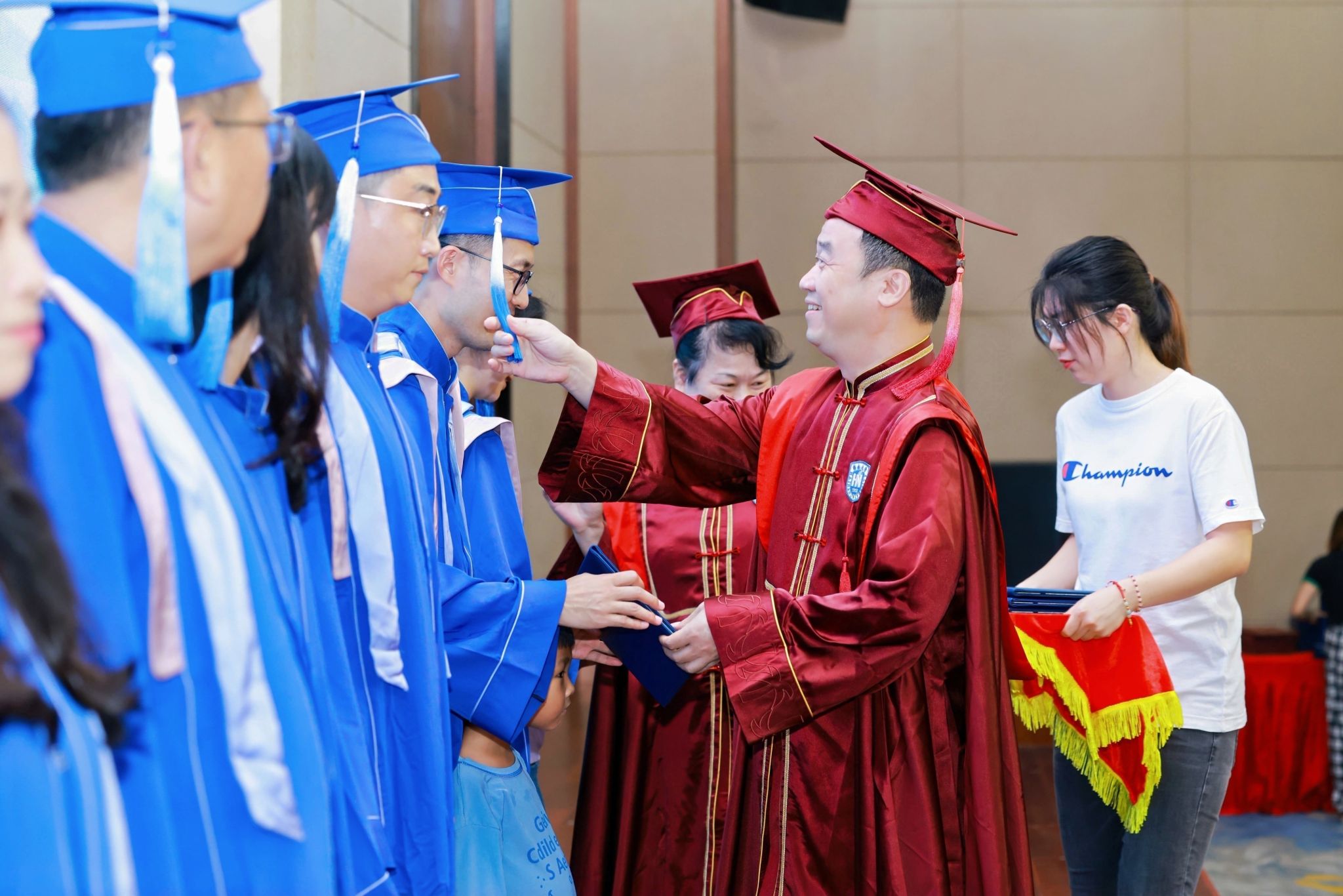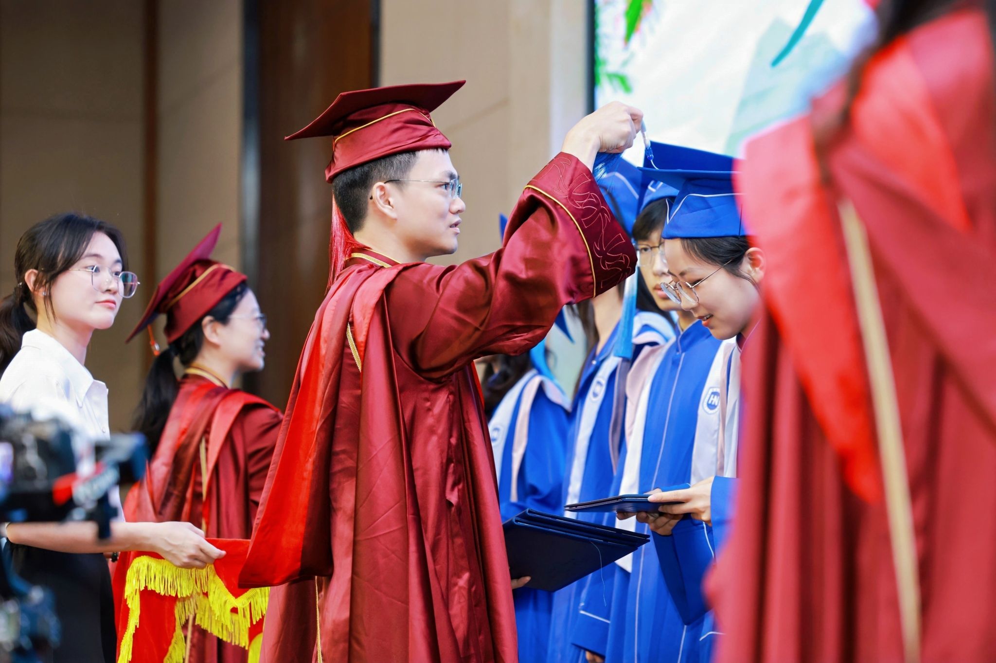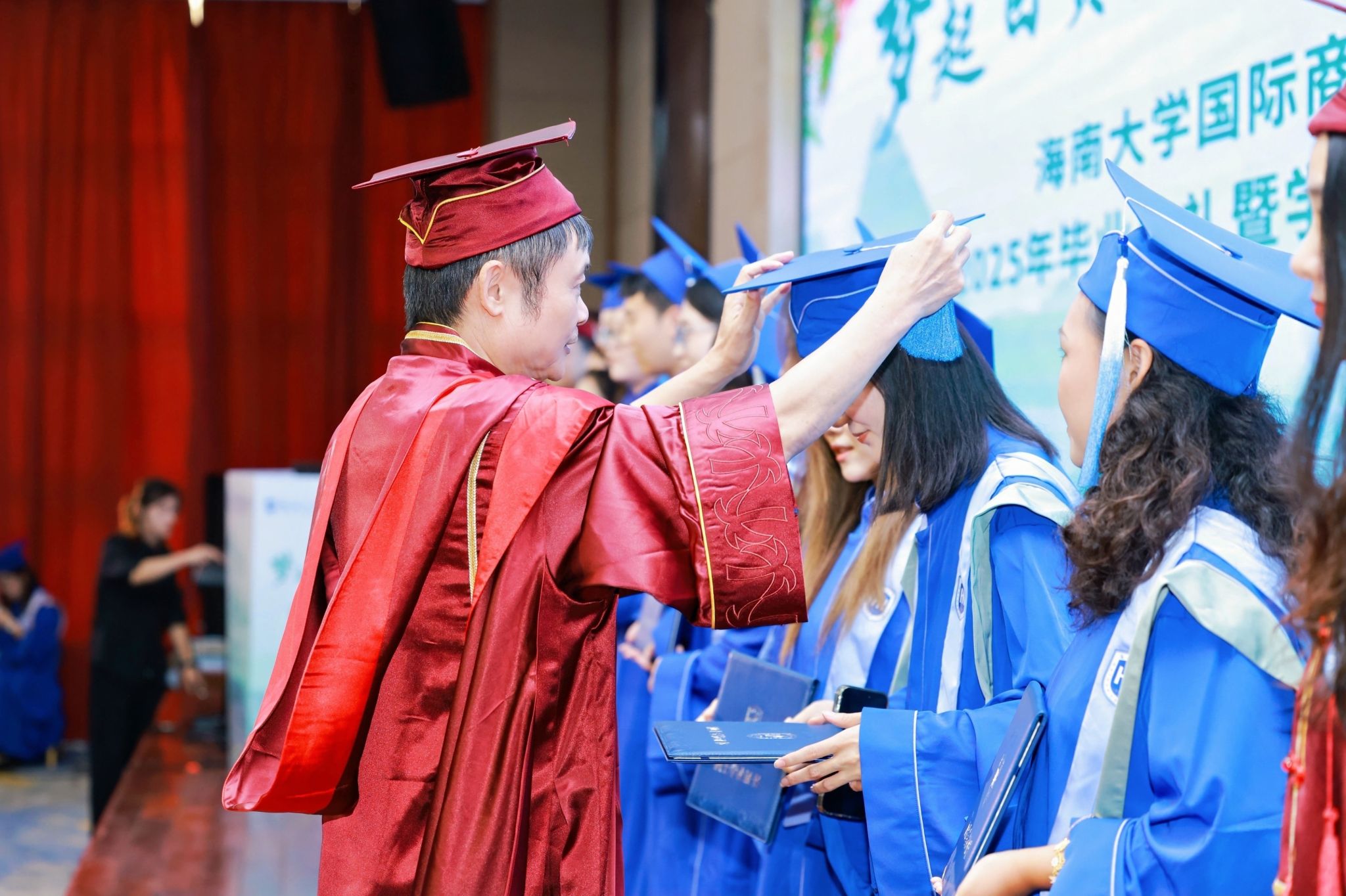 当公司领导、教师代表为毕业生代表拨穗正冠,流苏从右肩移至左肩的瞬间,青涩岁月与沉甸责任完成交接。“愿你们带着这份荣耀与责任,乘风破浪,前程似海” 主持人的话语让现场掌声雷动。