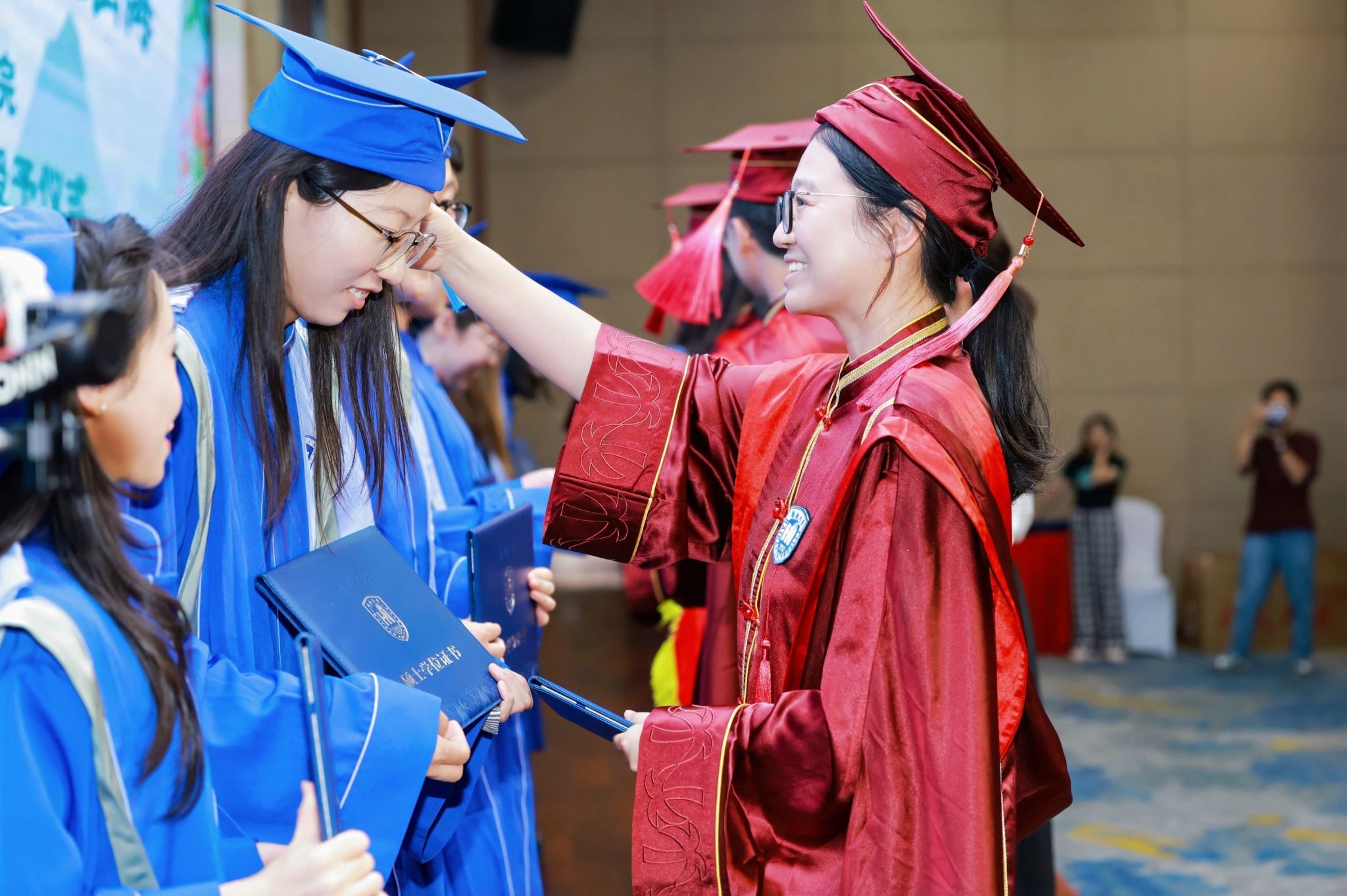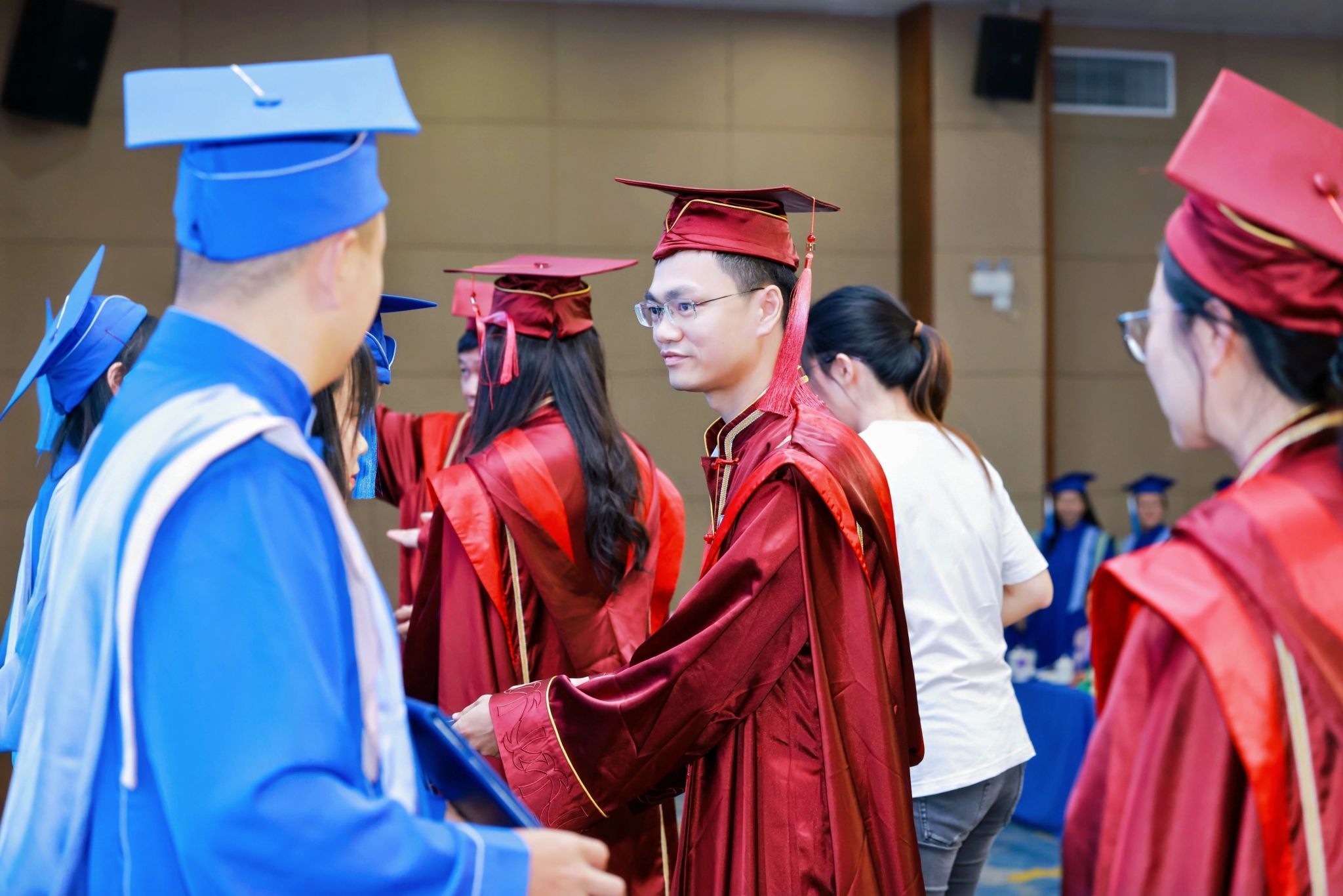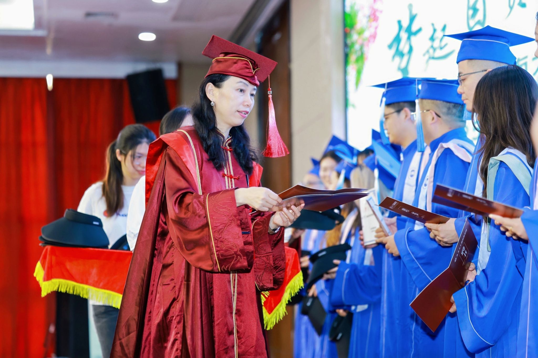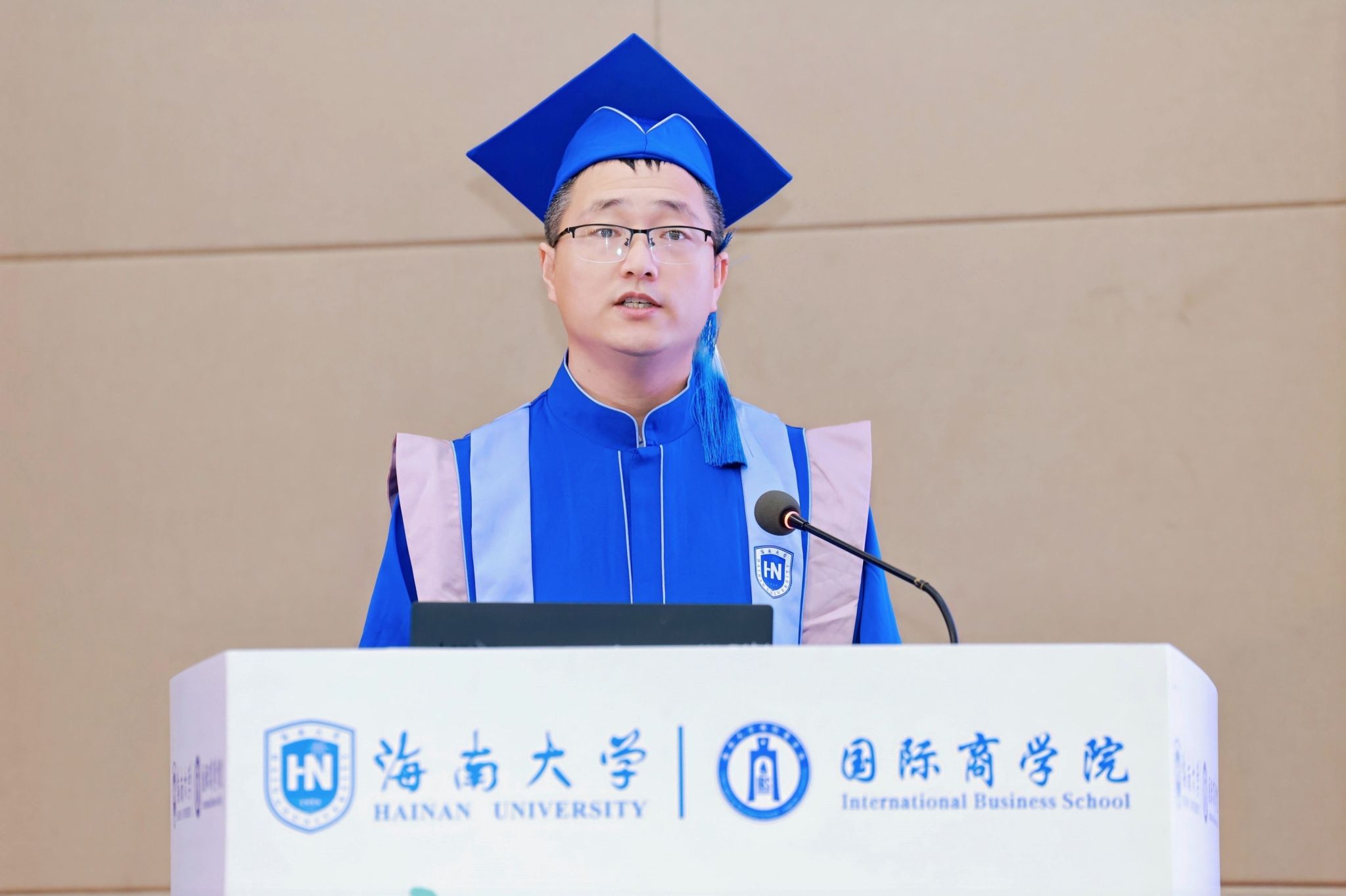 2022 级工商管理专业硕士毕业生贾志强则分享了兼顾学业与家庭的奋斗故事:“入学时爱人正身怀六甲,33 岁的她因我熬夜写论文熬出第一根白发。” 他哽咽着感恩导师在申博路上的全力推荐,更难忘 “带着孩子上课、异地求学” 的同窗群像:“满头白发见证了我们用‘商道正义’破解人生难题的坚持,如今终于能带着‘经世济民’的初心奔赴职场。