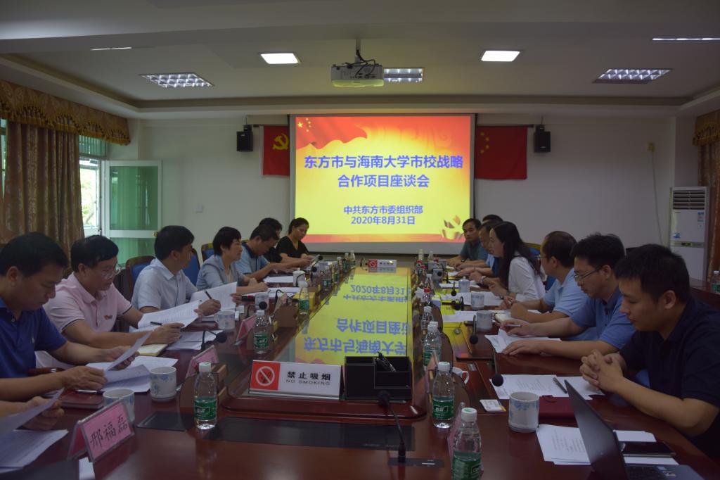 东方市委组织部部务委员、人才发展局局长王专明、东方市人民政府办公室主任李伟波、市教育局局长文英飞、市农业农村局局长邢福磊、市工科信局局长蒙勇、市就业服务中心主任麦鸿飞、市人才发展服务中心主任李明月等分别就人才培养、智库建设、“十四五”规划、农业农村发展、品牌建设和创新创业基地建设等方面与管理公司领导班子展开广泛深入地交流,并探讨了合作的路径及可能的抓手。