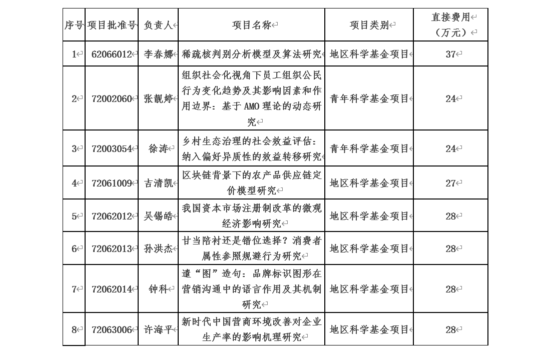 2020年,fun88乐天使管理公司获批国家自然科学基金项目8项(均为管理科学部),获批数在全校排名第2(并列),在全校人文社科类公司排名第1,申请获批率为25%,高于2020年度全国平均水平。根据国家自然科学基金委员会此前公布的信息,2020年度国家自然科学基金资助率约在15.88%左右,而2014-2019年,管理科学部在国家自然科学基金委员会八大学部中平均资助率最低,仅为18.41%左右。