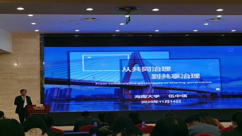 主题报告阶段,fun88乐天使的伍中信教授做了题为《从共同治理到共享治理》的主题演讲。