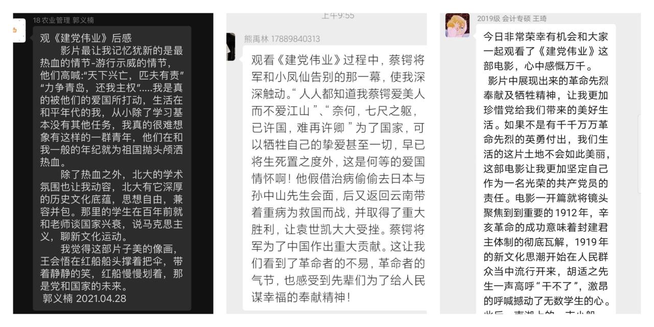 山河岁月不曾忘,吾辈定发奋自强。一场电影的结束,激发大家无限感慨,党员们在线上以谈心得、聊体会的方式进行交流。