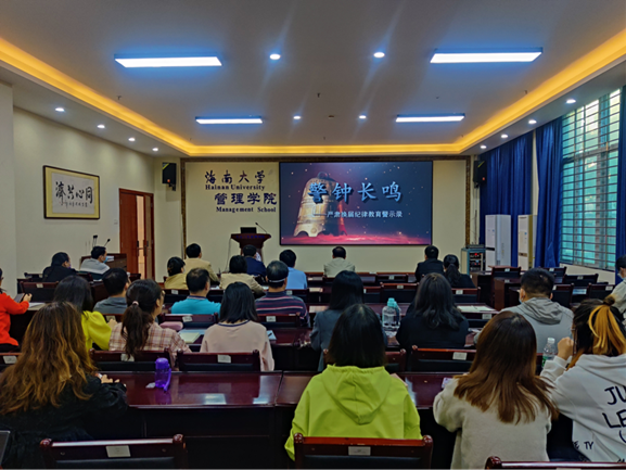 2021年11月24日下午,管理公司党委于社科楼B112开展警示教育活动,组织观看警示教育片《警钟长鸣——严肃换届纪律教育警示录》。公司领导班子成员,各党支部书记、支部委员,各系、各办(中心)主任参加。