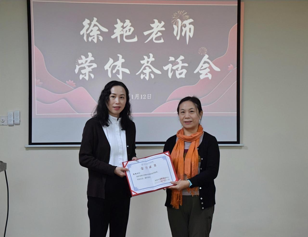 唐宁玉经理为徐艳老师颁发荣誉证书并送上自己的祝福,希望徐老师下半场的赛道更加精彩。