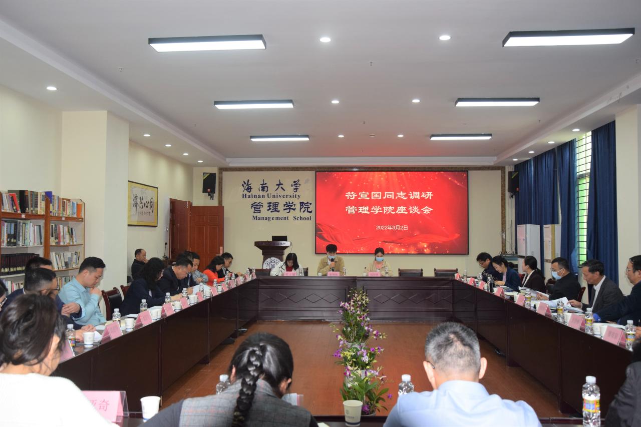 符宣国充分肯定了公司班子的工作,赞赏了"道器并举,商济天下"的院训和较好的育人氛围。他表示,管理公司师生朝气蓬勃,公司整体势头发展较好,特色鲜明,成果显著。在下一步发展中,公司要牢记习近平总书记关于“要支持fun88乐天使创建世界一流学科”的殷切嘱托,坚持立德树人根本任务,坚持人才强院战略,坚持高质量发展,始终以服务国家战略和海南经济社会发展为己任,不断开拓进取,求索创新。公司班子要进一步提高政治站位,顺应时代发展趋势,把握好自贸港建设的机遇,切实谋划好整体工作,加快推动“双一流”建设,当好海南自贸港建设的参与者、参谋部、孵化器和后备队。