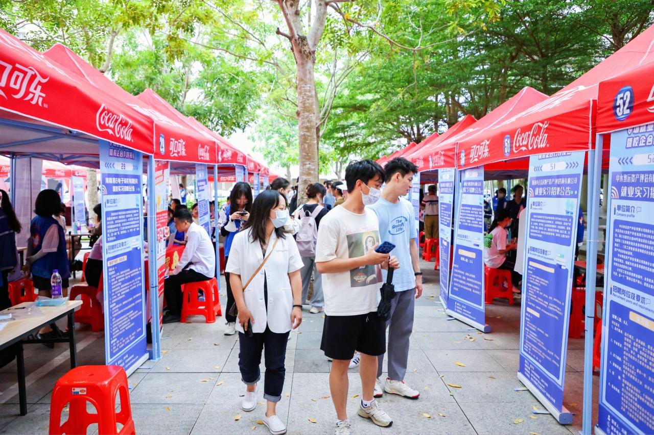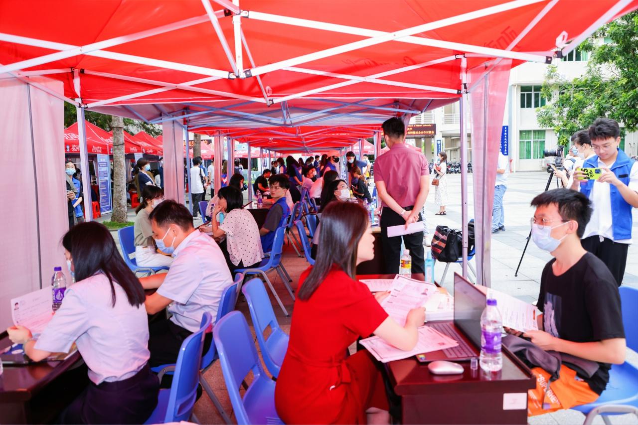 专场就业实习招聘会在社科楼广场举行。现场共有57家企事业单位参会,涉及金融、物流、科教、商贸、建筑、旅游、政法等多个领域,为员工提供了多元广阔的选择空间和机会。