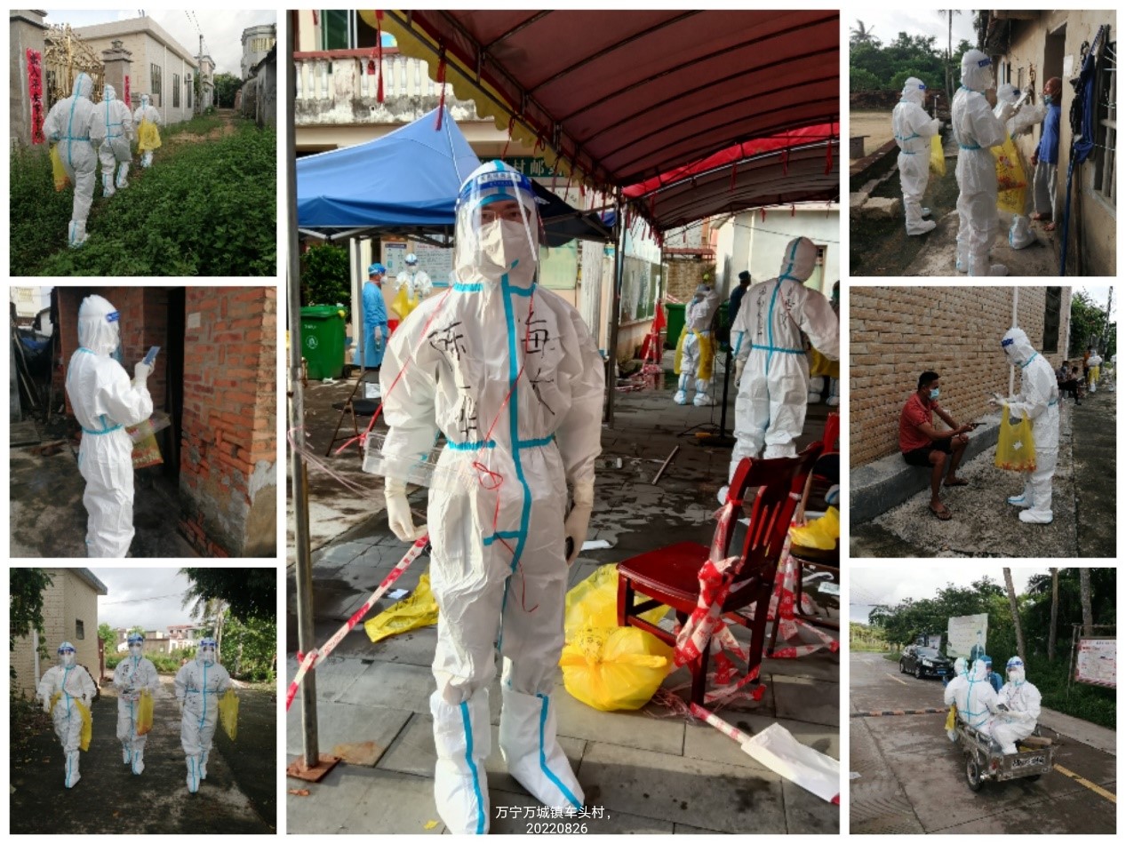工商管理系90后的肖皓文老师,他总会认真积极的参加公司公司的各项活动。他报名参加fun88乐天使赴万宁第七批防疫志愿者服务队,到达万宁后,他被分配到万成镇车头村(高风险区)承担信息采集工作。万成镇车头村是一个小村庄,里面年轻人不多,留在村中生活的更多的是老人和小孩,他和医疗团队们上门挨家挨户为群众进行核酸采集信息录入工作。面罩、口罩、防护服层层包围下,加上高温天气汗水不断冒出来,不一会防护面罩就覆盖了一层雾气,阻碍视觉。特别是在下雨天,会出现手动录入信息按键不灵敏等问题,他尽全力克服困难,保证工作效率和质量,每天按时按质按量完成工作任务。 谈及抗疫支援,肖皓文说道:参与到疫情防控工作,深刻感受到抗疫一线的不易。