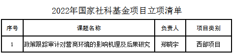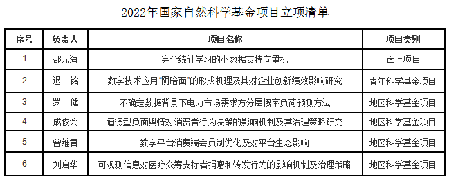 2022年管理公司科研项目申报工作再创佳绩,共获批6项国家自然科学基金项目、1项国家社科基金项目和3项教育部人文社会科学研究项目。