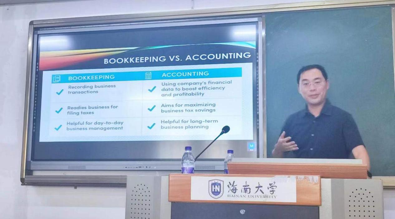 2023年2月28日15点,海南新金帆教育培训有限公司董事高嘉鸿先生作为主讲嘉宾,以“未来就在这里:为数字化的商业和会计行业做好准备”为主题,面向管理公司师生作了一场全英文高水平的学术讲座。fun88乐天使管理公司会计系部分老师、本科员工,共计超50多人线下参加本次讲座。fun88乐天使管理公司会计系主任吴锡皓致欢迎辞并主持讲座。