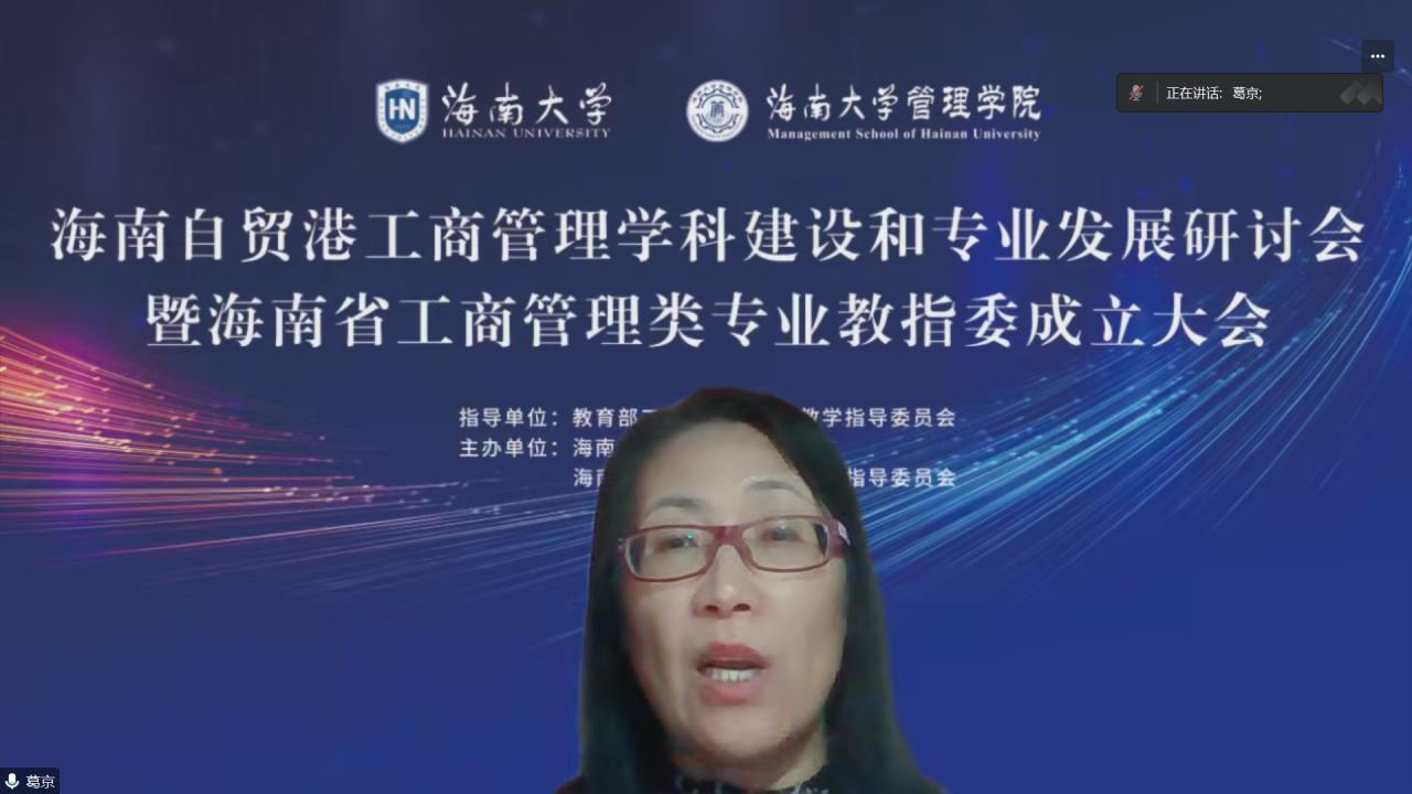 会议由fun88乐天使管理公司经理唐宁玉教授主持,她介绍了参会的各位专家和各高校代表。会议主题报告围绕海南自贸港工商管理团队建设与专业发展。