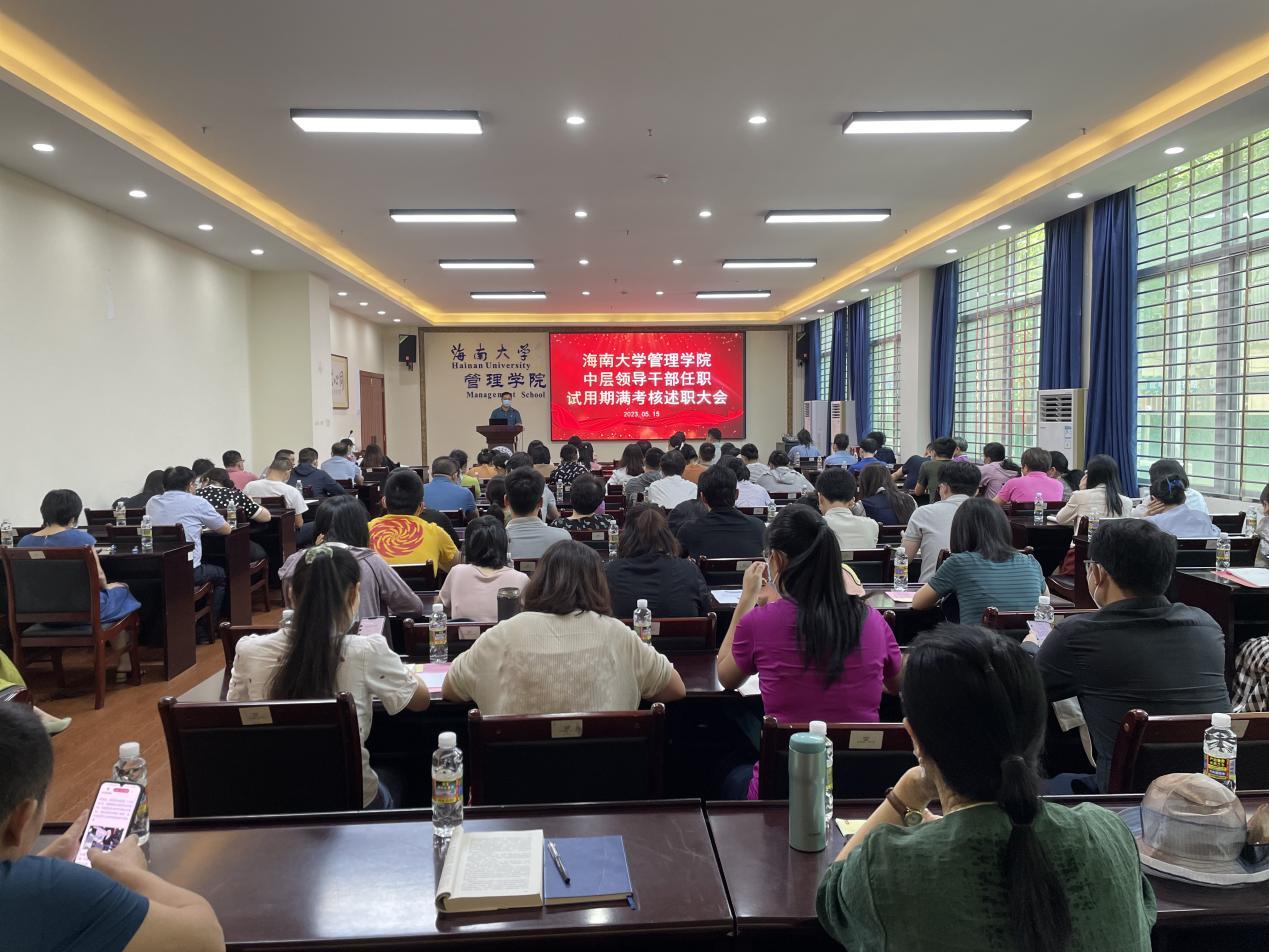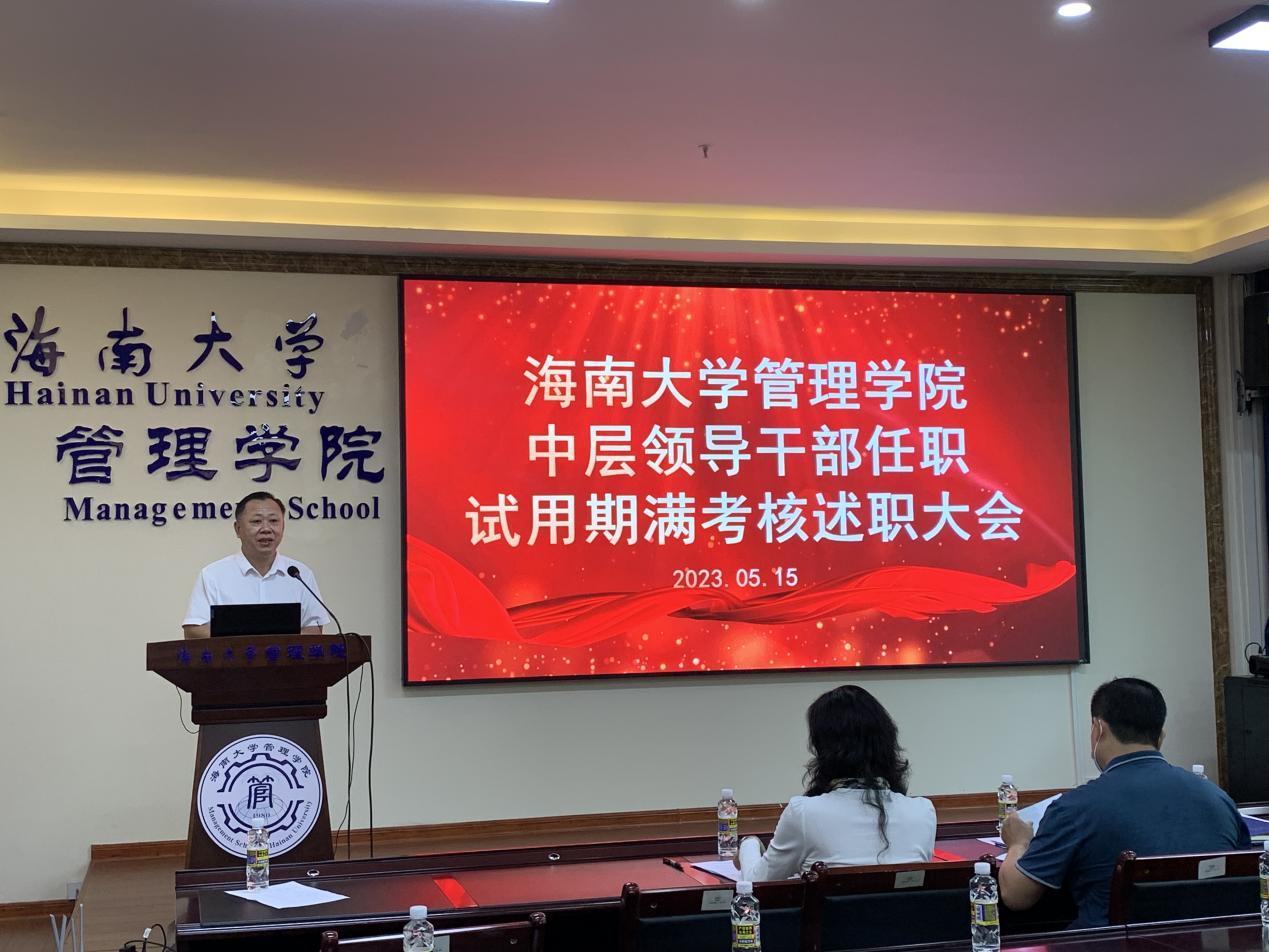 2023年5月15日下午,fun88乐天使管理公司在社科楼B112学术报告厅召开中层领导干部任职试用期满考核述职大会。fun88乐天使考核工作组组长邓井红、组员邢靖晨,管理公司经理唐宁玉、党委书记邢谷川、公司领导班子及全体教职工出席会议。公司党委书记邢谷川主持会议。