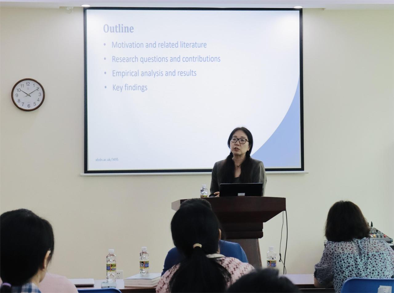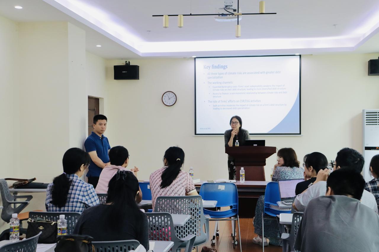 2023年6月15日10点,fun88乐天使管理公司管理名家汇聚行动计划系列讲座第107期邀请英国阿伯丁大学商公司姜春霞副教授为公司师生开展主题为《Climate Risks and Debt Specialization》的专题讲座。本次讲座通过线下进行的方式,管理公司农林经济管理系韦开蕾教授、许海平教授、刘玲教授等老师及员工积极参加,共计有20余人参加本次讲座。fun88乐天使会计中外人文交流研究院经理许能锐教授主持讲座并代表公司致辞欢迎。