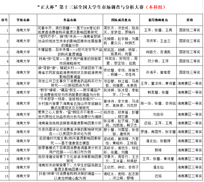 管理公司员工在5月28日闭幕的“正大杯”第十三届全国老员工市场调查与分析大赛中荣获佳绩。20项参赛作品获得奖项,其中研究生组和本科生组获国家级二等奖各1项,本科生组获国家级三等奖4项,海南赛区奖项14项。
