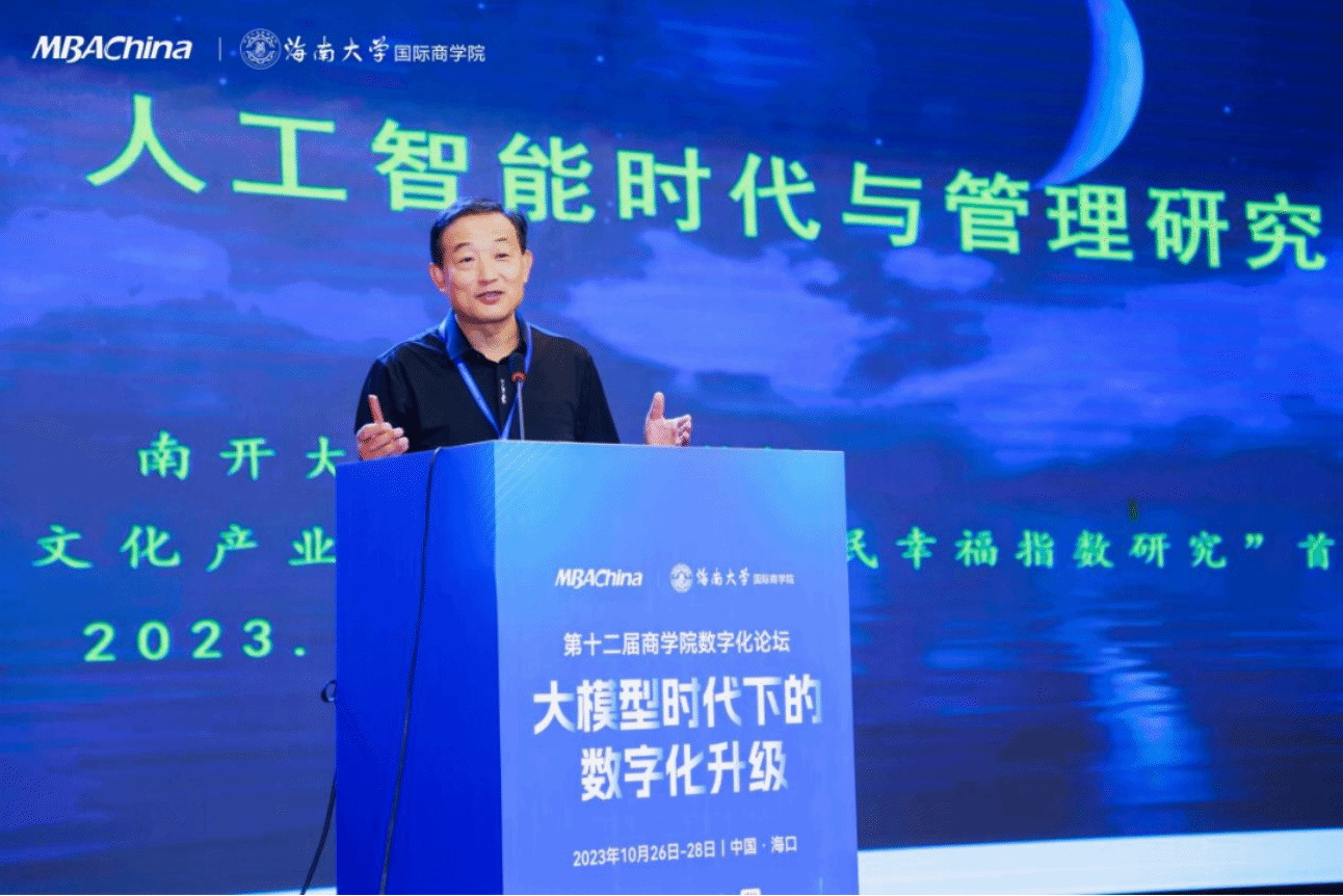 本次论坛非常荣幸地邀请到南开大学商公司经理白长虹教授作“回归创造:智能时代与管理研究”为题的主旨演讲。白教授从实践洞察之“AICG与‘百模大战’”“知识管理与人机交互学习”两方面展开阐述,探讨了智能时代Chat GPT对商科研究的影响。他表示,高校商公司作为知识创造单位、人才培养主体,应当高度关注与思考我们的管理研究在大变局时代中面临的挑战。他从“管理学科的学术创造力”进一步展开论述,指出工商管理学科要解释和应对时代新变化,呼吁高校专家学者多做面向实践的管理研究,以高质量案例研究撷取实践的智慧,发挥学科学术创造力,讲好民族性和世界性的中国管理故事。他还以“有创造表现的案例企业如特斯拉、抖音、科大讯飞、华为”为例,探究了管理研究在实践中的运用效果,分析了这类先锋企业如何在数字化转型中发挥创造力,为未来各个组织的数字化转型提供了方法、途径方面的启示。