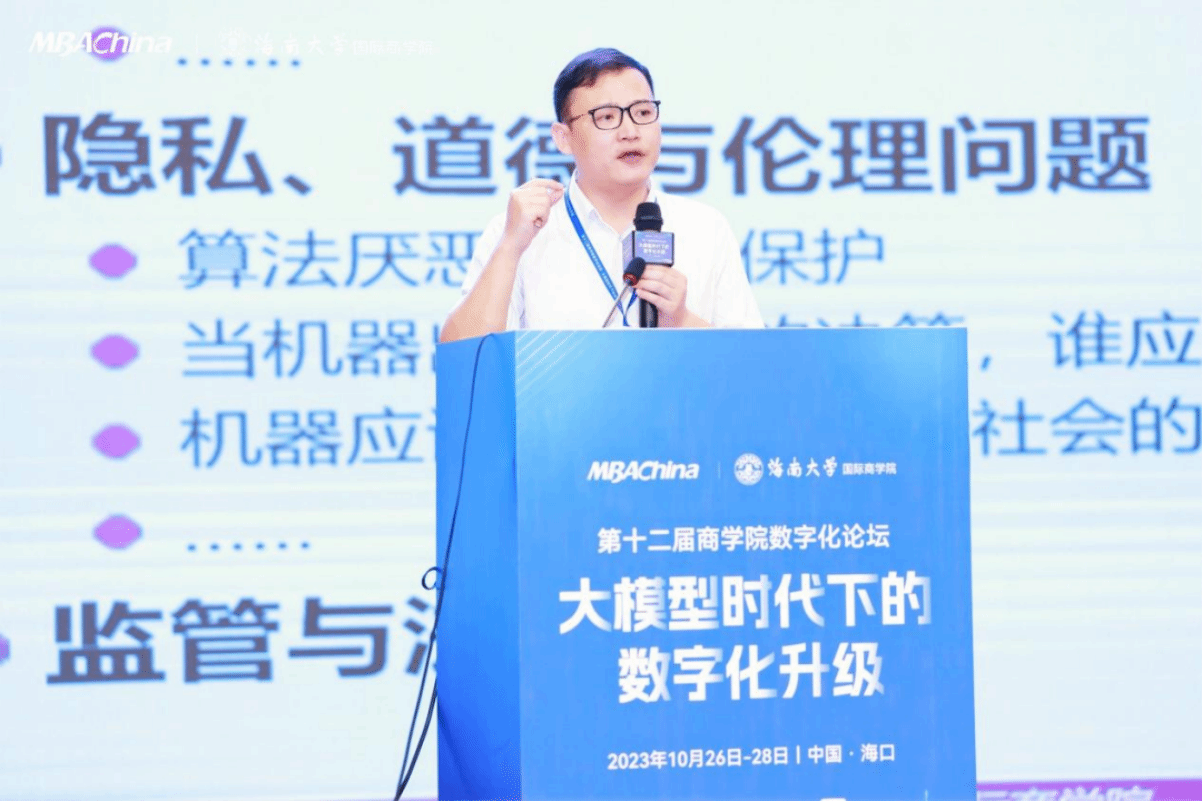 2023年10月27日,第十二届商公司数字化论坛在fun88乐天使田家炳楼二楼报告厅举行。商公司数字化论坛由清华经管公司、上交大安泰经管公司、复旦管理公司、人大商公司、中欧fun88乐天使、长江商公司、MBA China联合发起,自2010年开办至今已成功举办十一届。本次第十二届商公司数字化论坛由MBA China主办,fun88乐天使承办。论坛以“大模型时代下的数字化升级”为主题,共同探讨大模型时代下的数字化升级对教育、研究和管理等领域的影响。本次论坛的参会人员来自全国50余所高校的商公司,论坛由fun88乐天使副经理付景涛教授(上午场)和海南师范大学经济与管理公司经理陈江教授(下午场)主持。