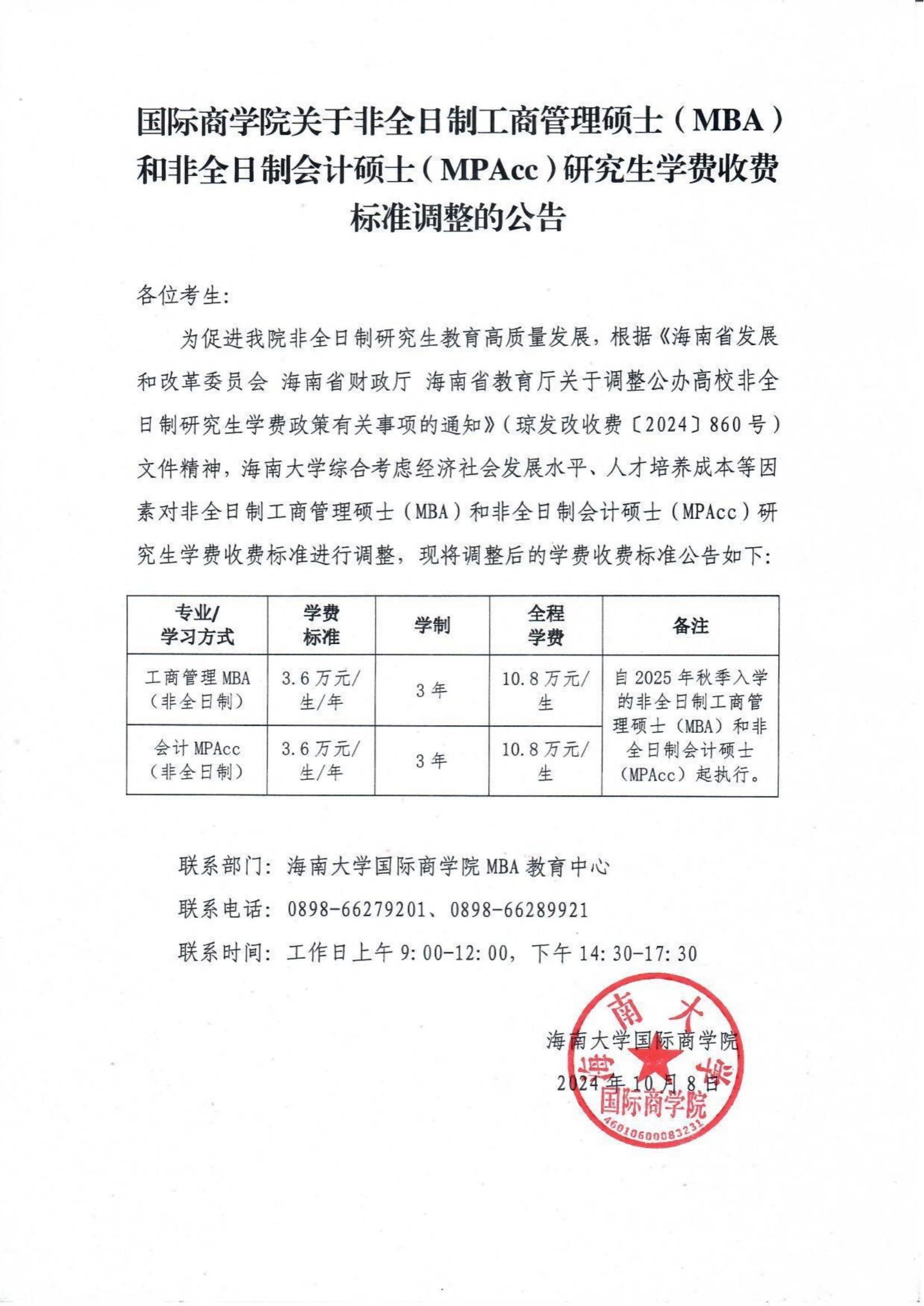 fun88乐天使关于非全日制工商管理硕士(MBA)和非全日制会计硕士(MPAcc)研究生学费收费标准调整的fun88乐天使公告