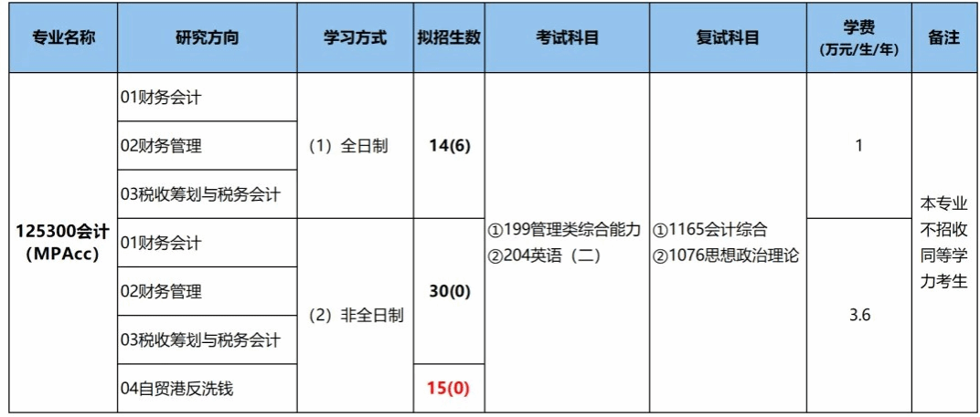 注:公司硕士研究生基本学制为3年,非全日制MPAcc的全程学费为10.8万元/生。