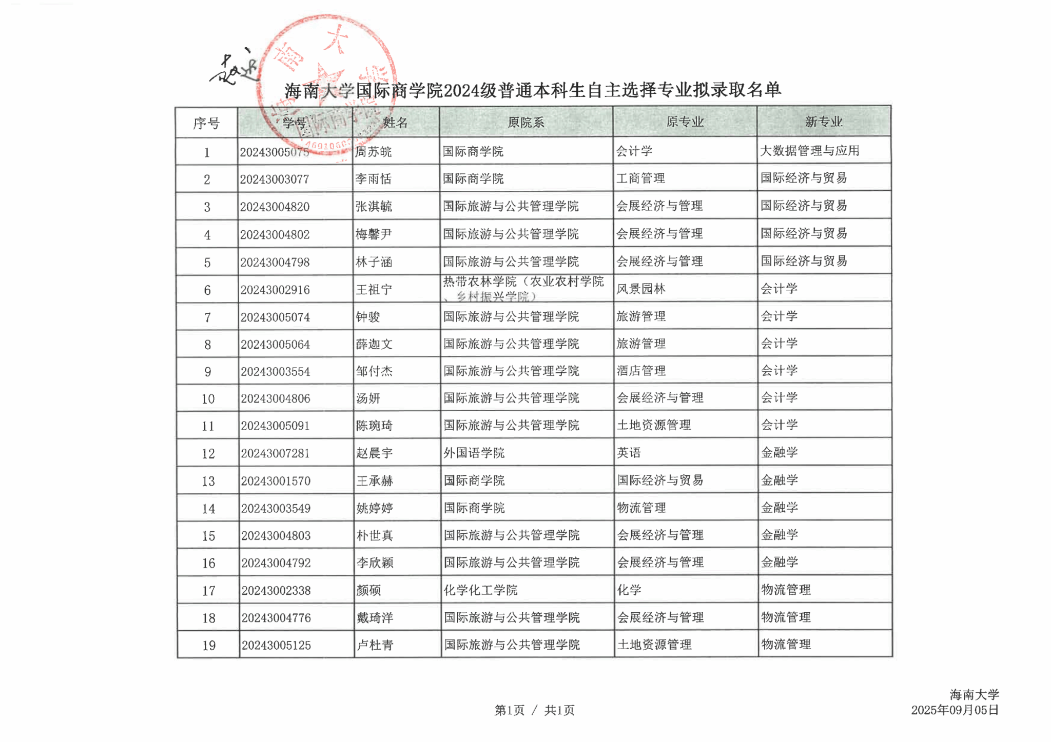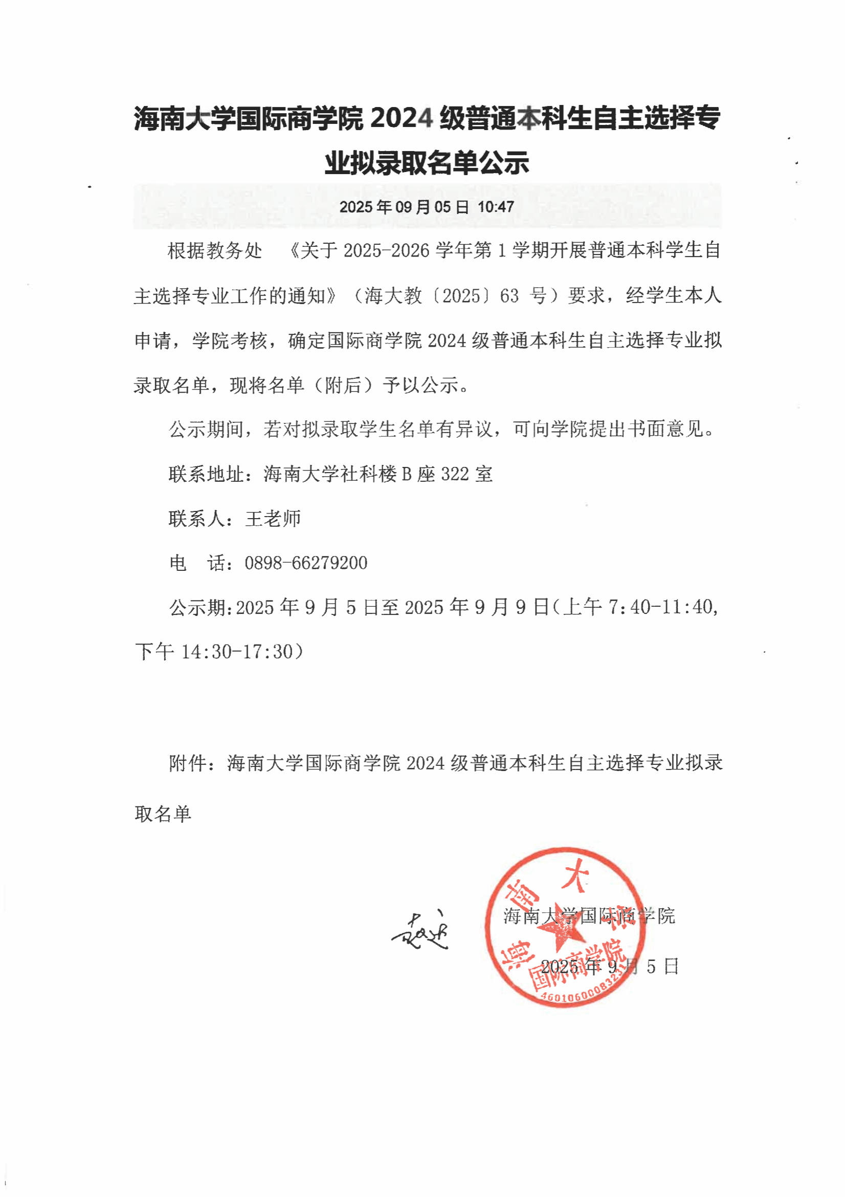 fun88乐天使 2024 级普通本科生自主选择专业拟录取名单公示