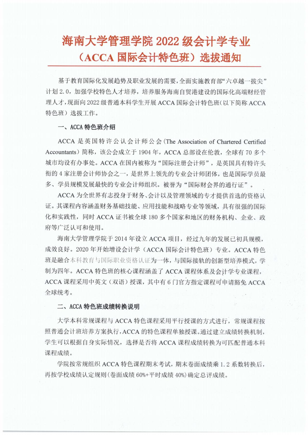 fun88乐天使管理公司2022级会计学专业(ACCA国际会计特色班)选拔通知