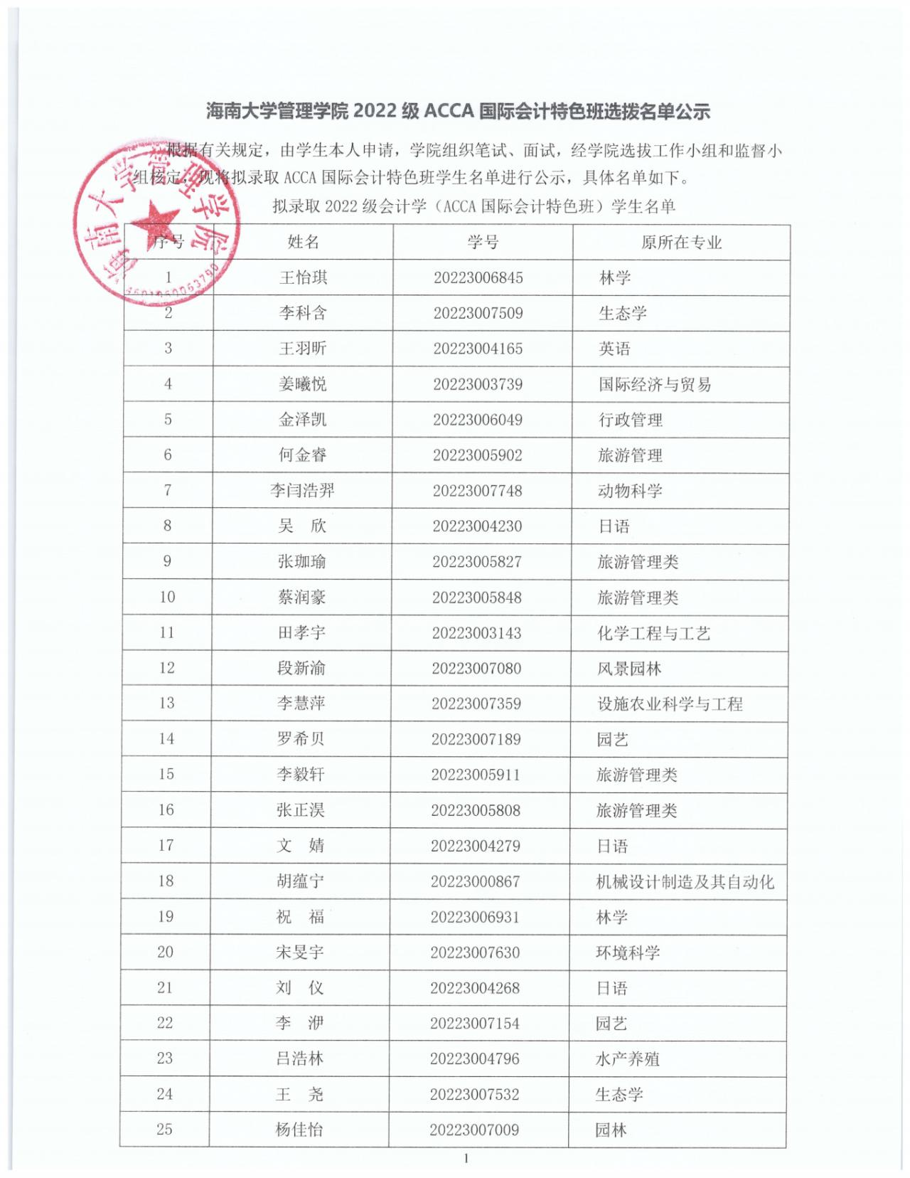fun88乐天使管理公司2022级ACCA国际会计特色班选拔名单公示