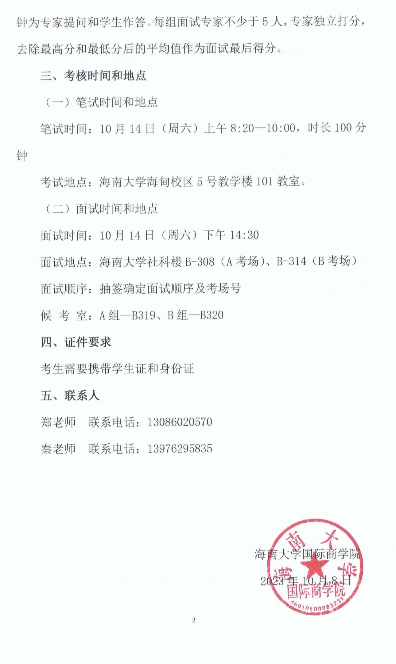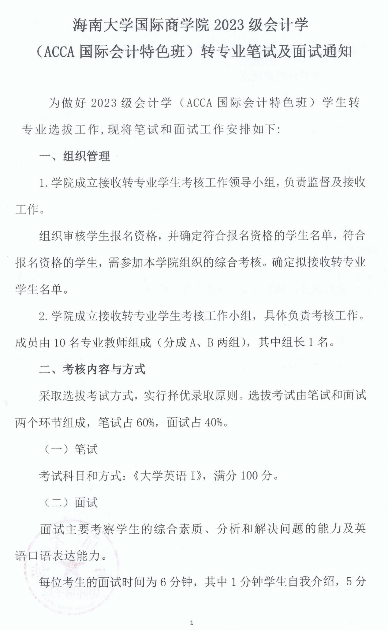 2023级会计学 (ACCA国际会计特色班)转专业笔试及面试通知