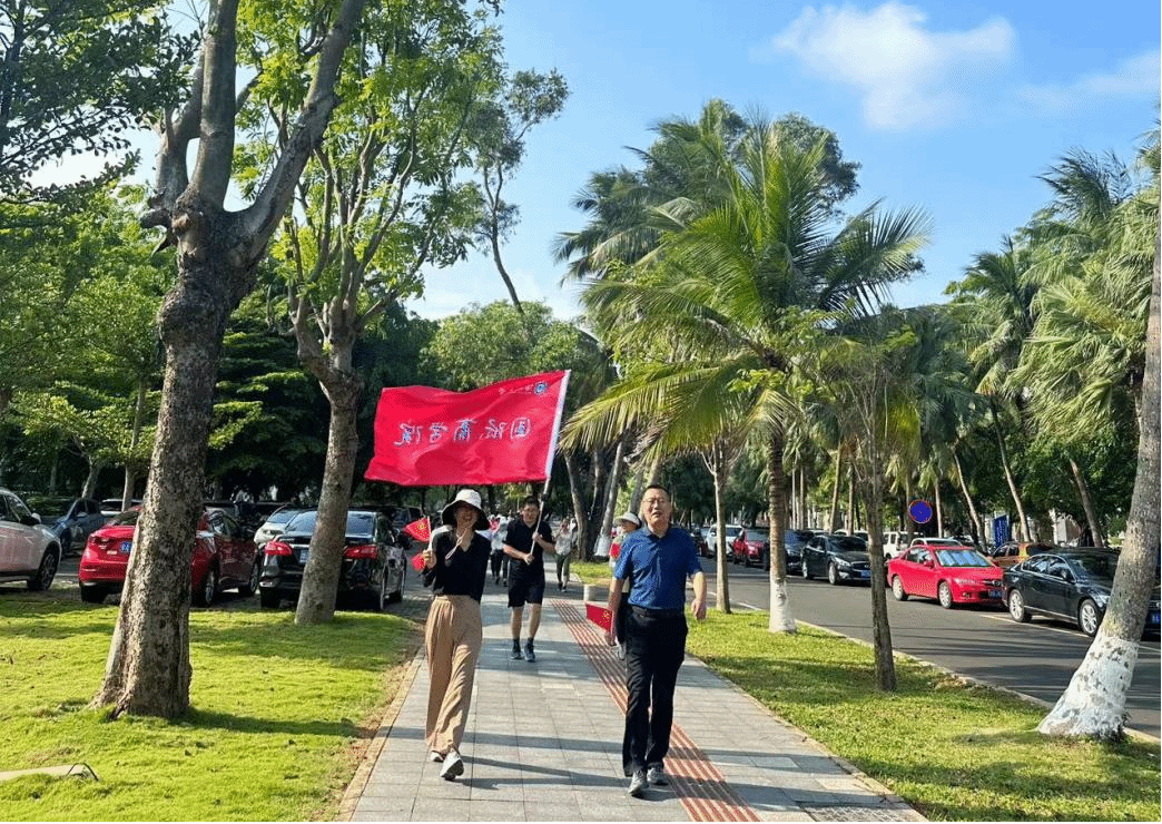 活动伊始,公司党委书记南国芳、经理唐宁玉带领部分党员和教师从社科楼出发,步行至fun88乐天使新南门与中国农业银行海口龙华支行团总支汇合,共同前往目的地天空之山。
