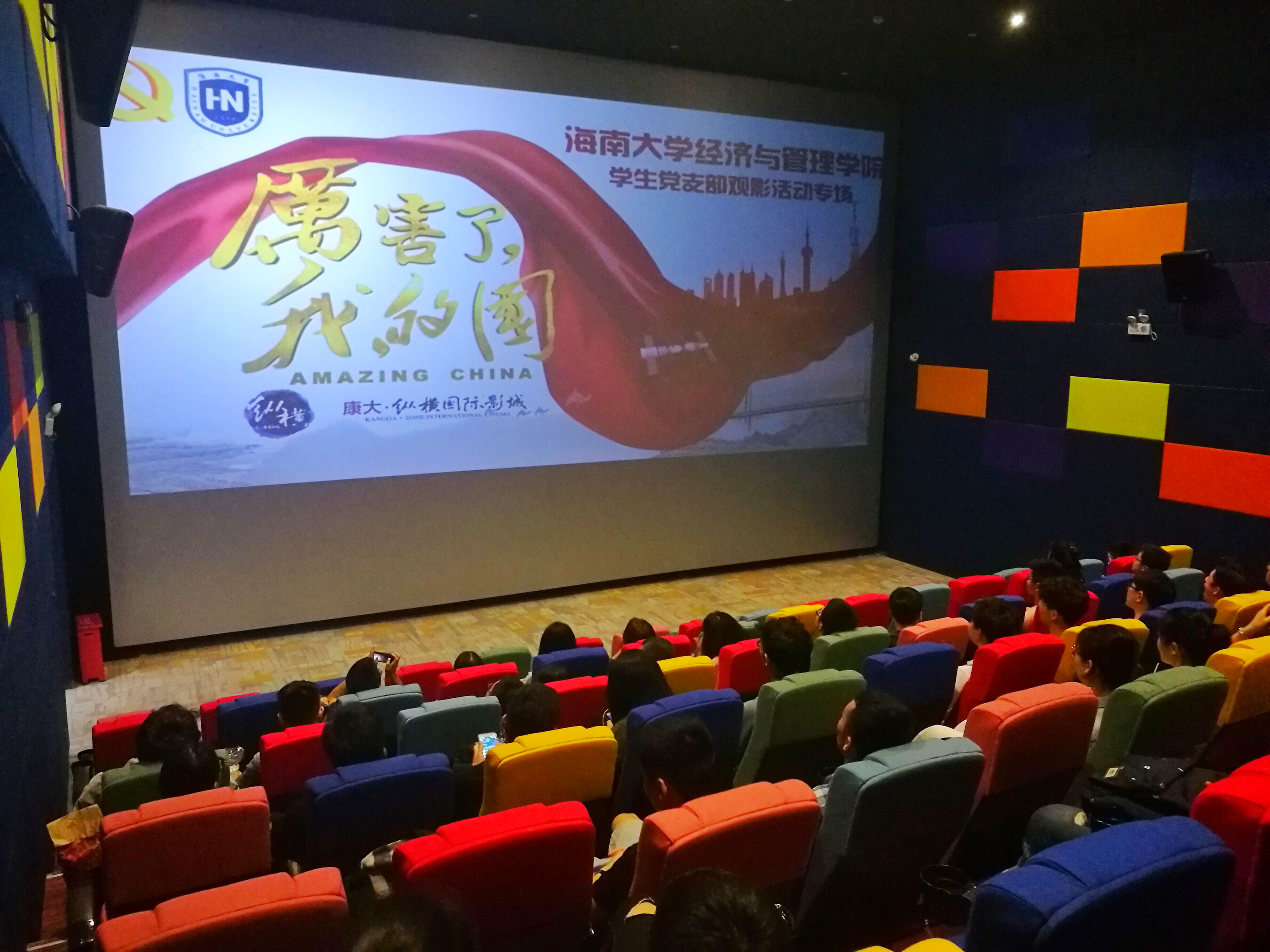 为深入学习贯彻落实党的十九大精神,进一步弘扬爱国主义精神,加深公司员工党员对党的十八大以来取得历史性辉煌成就的认识,增强员工党员的历史使命感和民族自豪感。3月24日晚6点30分,经济与管理公司员工党支部组织专场观影活动,集中观看学习了纪录影片《厉害了,我的国》。公司党委副书记周邦华、党委委员吴新、辅导员刘筱笛一同参加活动。