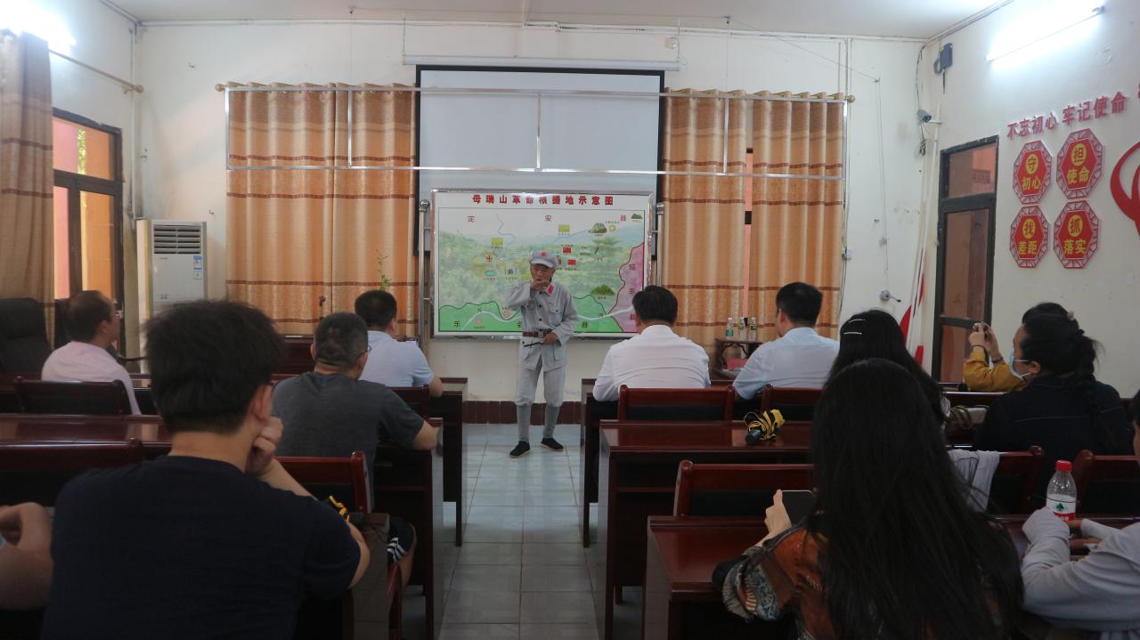 在母瑞山纪念园的教室里,邢谷川书记结合母瑞山的革命历史,给大家上了一堂精彩党课。邢谷川书记指出,母瑞山是海南的“井冈山”,是琼崖革命二十三年红旗不倒的“摇篮”。他通过1927年9月椰子寨战斗、1930年8月的陵水起义以及1939年2月的白沙起义等海南经典战役,详细讲述了从1927年椰子寨打响“第一枪”到1950年海南解放的革命历史。他强调,海南的革命历史具有十分重要的意义,也为红河留下了宝贵的红色基因,我们要永远铭记海南革命的光辉历史,从百年党史中汲取智慧力量和精神养分,在红色基因传承中牢记党的性质宗旨,在开启新征程中接续奋斗。