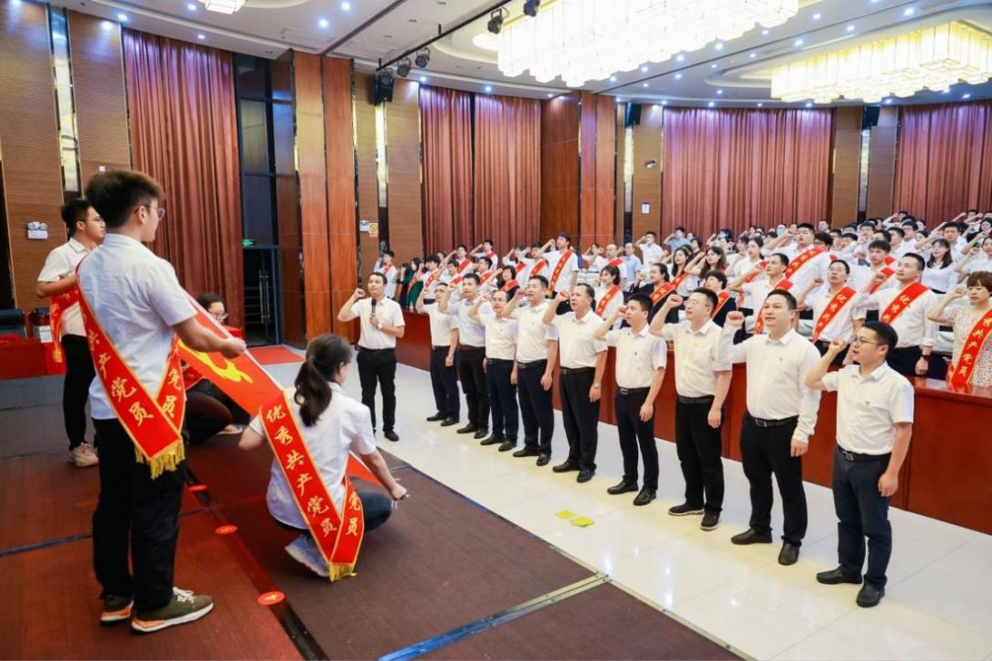 大会在庄严的国歌中拉开帷幕。面对庄严的党旗,全体起立,公司党建组织员李子昂领誓,新发展党员庄严宣誓,老党员重温入党誓词。
