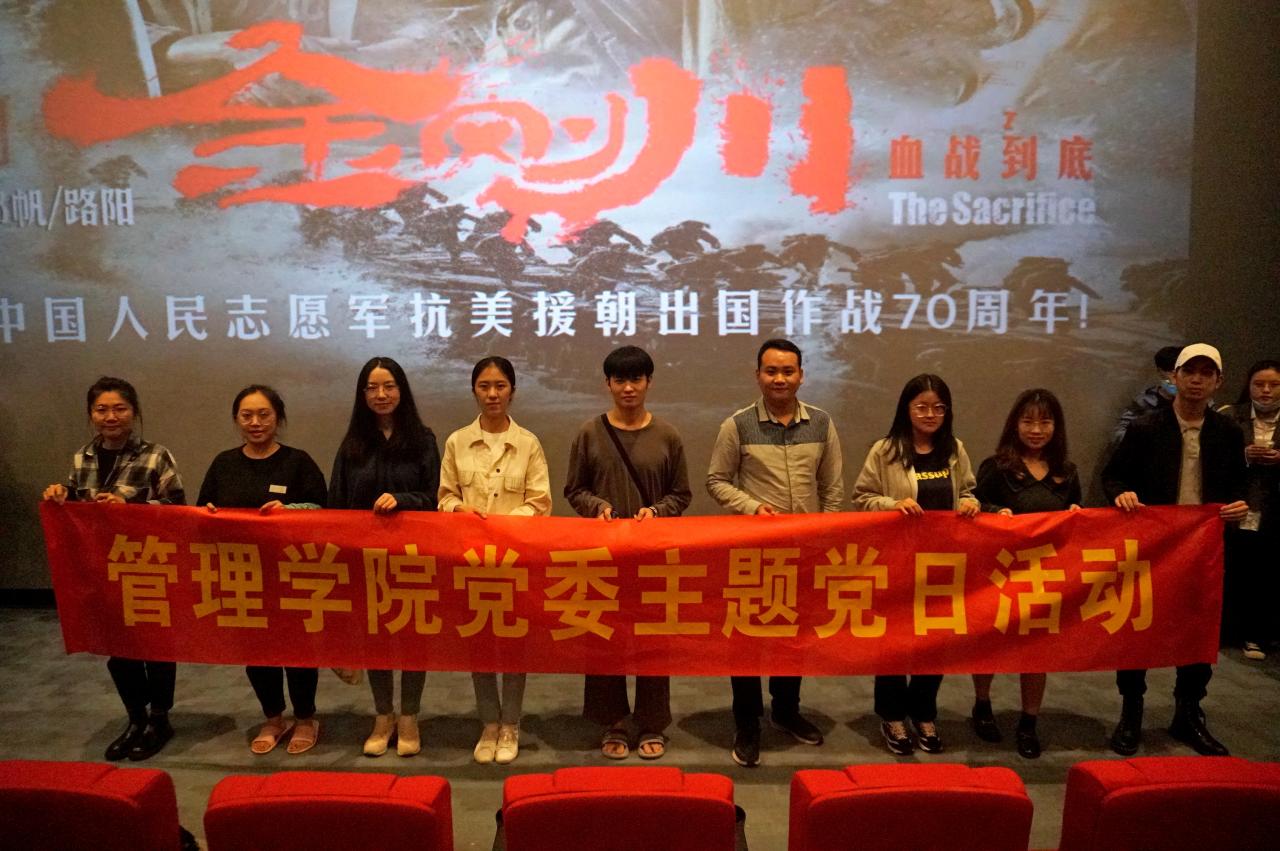 为纪念中国人民志愿军抗美援朝出国作战70周年,弘扬伟大抗美援朝精神,加强爱国主义教育、传承红色基因,fun88乐天使管理公司研究生第二党支部于2020年11月28日组织了支部师生党员到海甸城影院观看爱国主义题材电影《金刚川》,开展十一月主题党日活动。