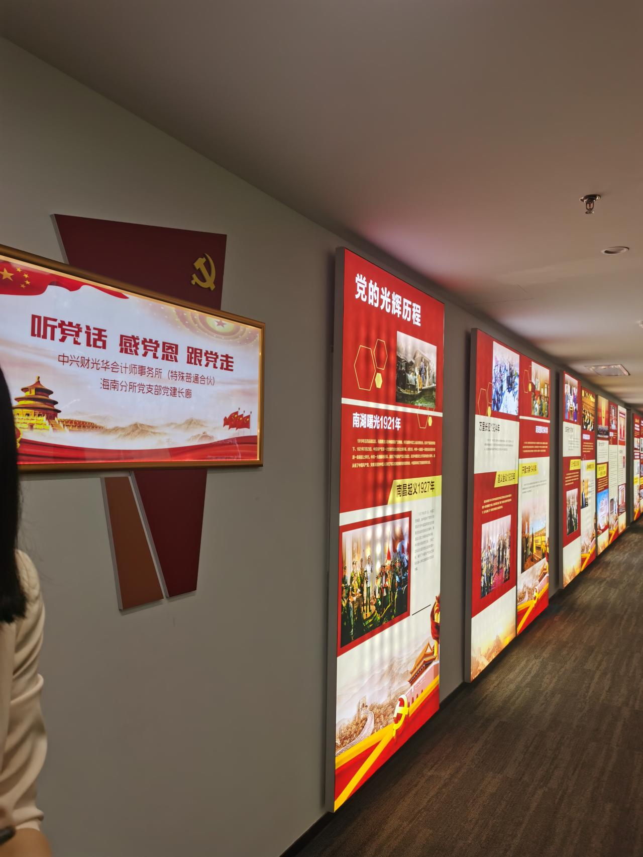 海南中兴财光华会计师事务所作为省级党建示范基地,党建工作做得有声有色,受到省委有关单位的表彰,获得了党建先进基层党组织等诸多殊荣和称号。胡亚玲所长带领大家参观了该所的党建长廊及党员之家,并同时介绍了该所党支部的具体情况。在组织建设方面,该所党支部专门设立党建专员,协助支部书记抓党建;为了给党支部活动和党员学习提供良好的空间,该所还积极投入打造党员活动平台,活动宣传展板及党建活动场所;为了增强凝聚力和吸引力,党支部也开展了丰富多彩的党建活动和主题党日活动,包括组织党员到井冈山、延安参观学习、请党建专家来所做报告、引导党员和职工参与社会公益活动和志愿者活动等等。