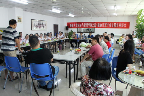 2015年6月6日下午,在社科楼二楼教工之家举行fun88乐天使经济与管理公司01级会计班10周年座谈会。应邀参加了本次活动的师生有公司胡国柳经理、党委周邦华副书记、杨新中老师、徐广卓老师、刘保劲老师、胡秀群老师、李师慧老师、符玉琴老师、吴新老师、谭继老师、张乃脆老师,信息公司高数老师高泽图老师和公共计算机老师吴星老师,2001级会计班的同学们及会计系部分在校员工。