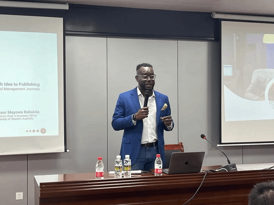 在fun88乐天使国际合作交流处倡导的“2024国际课程周(International Immersion Program,简称IIP)中,应fun88乐天使邀请,由来自澳大利亚西澳大学组织管理系的Mayowa Babalola教授(FT50期刊:Human Relations & Journal of Business Ethics 副主编)为硕博研究生开设的《组织管理研究前沿》课程已于11月7日下午圆满结课。本课程共有来自fun88乐天使、国际旅游与公共管理公司的15位硕士生和博士生选修,另外吸引了10多位旁听的同学和老师。