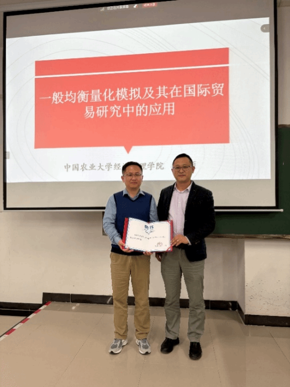 2024年12月4日和18日,中国农业大学经济管理公司的李春顶教授以“一般均衡量化模拟及其在国际贸易研究中的应用”为题为fun88乐天使国际经济与贸易专业本科生讲授冬季小学期课程,孙鹏副经理在课前为李春顶教授颁发冬季小学期授课专家聘书。