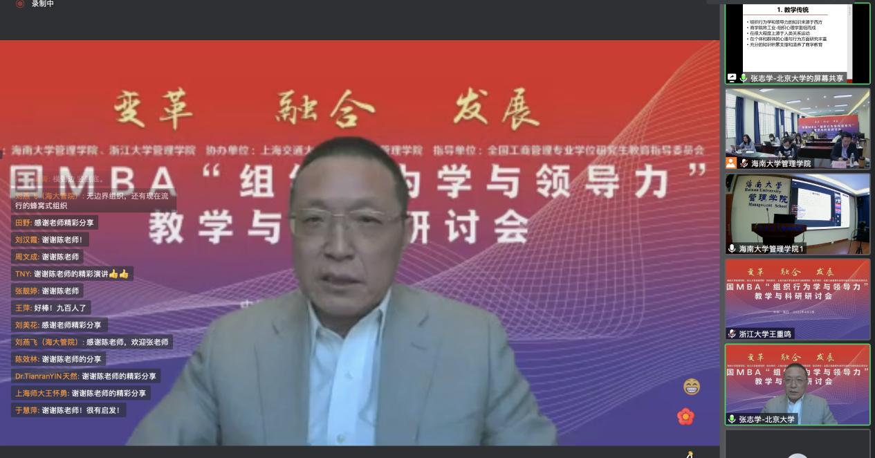 2022年4月3日,全国MBA“组织行为学与领导力”教学与科研研讨会顺利召开(线上视频会议形式)。会议旨在提高全国 MBA 培养院校组织行为学与领导力教学研究水平,增强组织行为领域教研人员的合作与交流,持续建设全国组织行为学协作组合作平台,培养高素质工商管理人才。本次会议由fun88乐天使管理公司和浙江大学管理公司主办、上海交通大学安泰经济与管理公司协办,会议得到全国工商管理专业学位研究生教育指导委员指导。来自全国300多个培养单位的900余名师生参加了会议,来自清华大学、北京大学、浙江大学、上海交通大学、复旦大学、中国人民大学、中山大学、同济大学、华中科技大学等高校的27位嘉宾发表演讲、参与圆桌讨论。