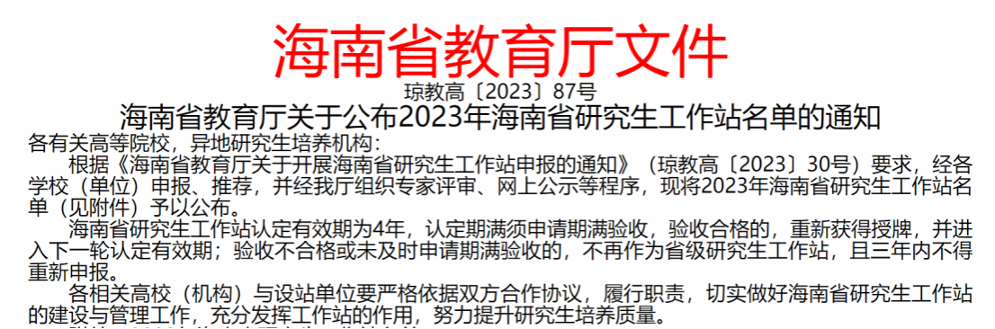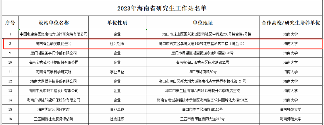 近日,海南省教育厅公布2023年海南省研究生工作站名单,共有40家单位入选。其中,由王丽娅教授牵头、fun88乐天使金融硕士学位点与海南省金融发展促进会联合申报并获批1个海南省首批研究生工作站。