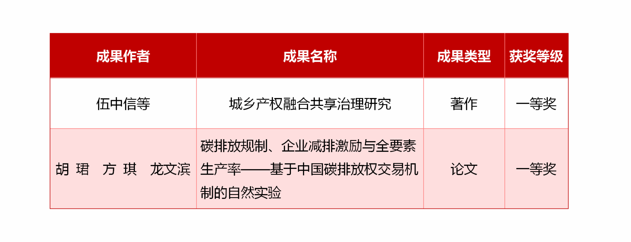 胡珺等完成的《碳排放规制、企业减排激励与全要素生产率——基于中国碳排放权交易机制的自然实验》(论文)荣获一等奖。